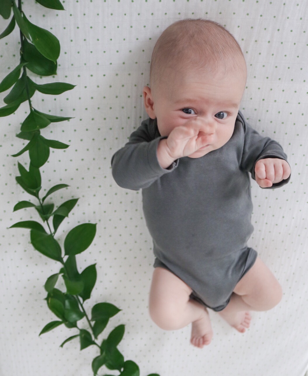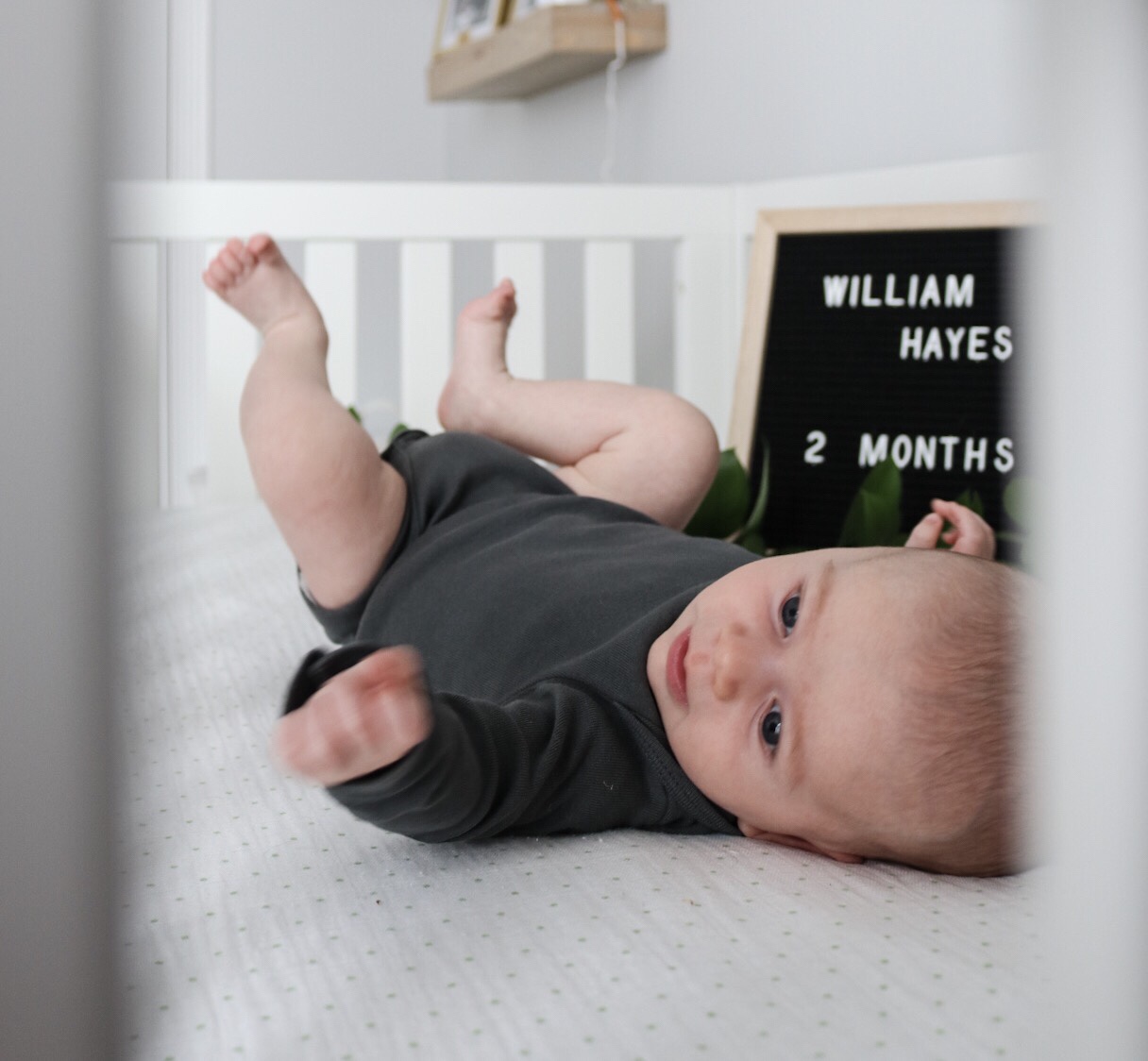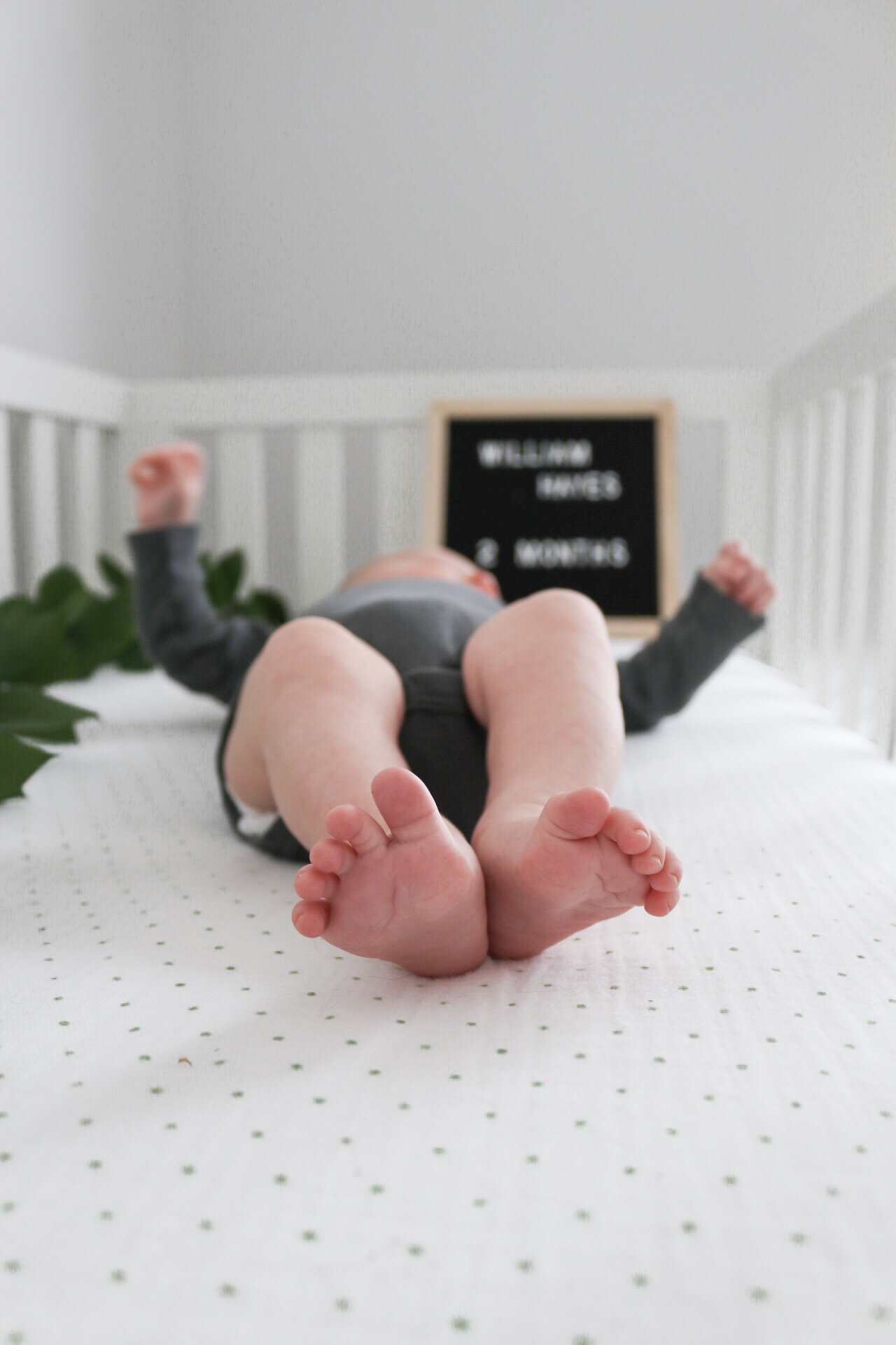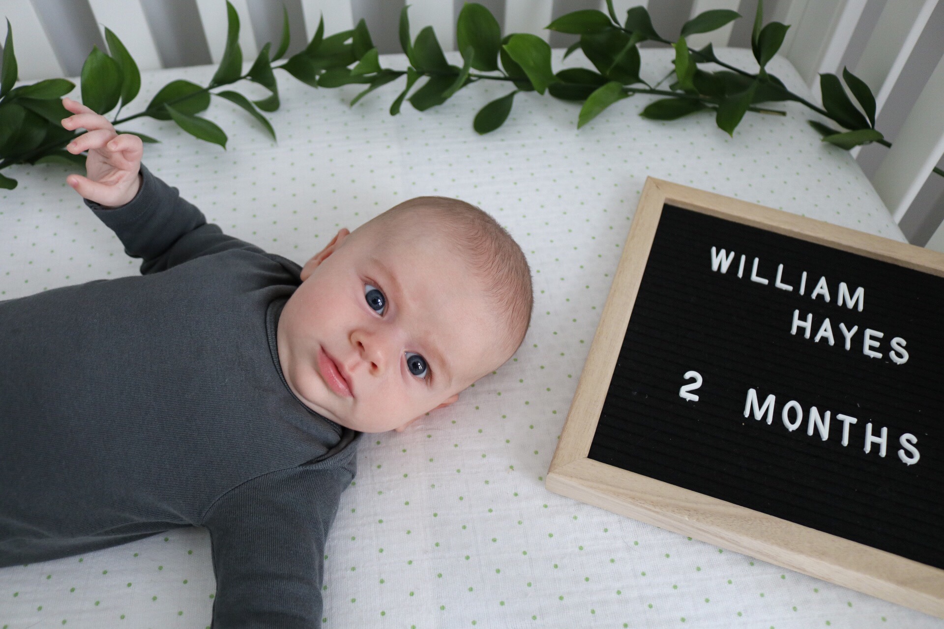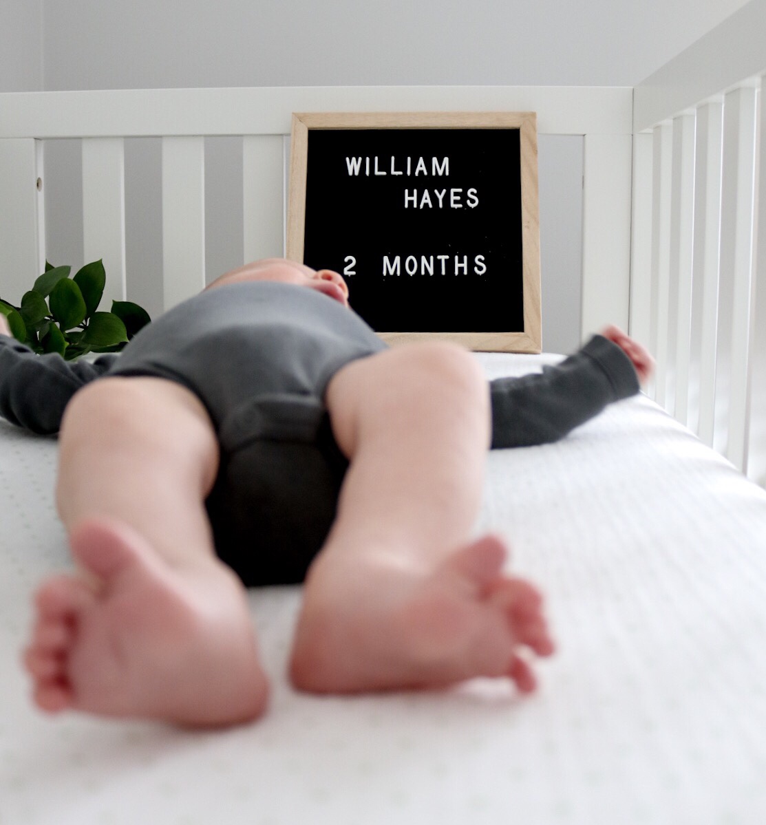 I can’t believe my little guy is two months old today! Time is honestly flying by. Will has his two month doctor appointment tomorrow so I’ll update how much he weighs after that but I have a feeling he’ll be around 12 pounds? This past month Will has gotten the hang of sleeping at night. He usually goes to bed around 7:30-8pm & sleeps until 5am, have a quick feed and then sleep until about 7 or 8 am. This morning he slept until 9am(!!!), I woke up around 8:15 shocked that he was still snoozing. He has started sucking his thumb which I think is helping him put himself back to sleep. Whatever it is I’m thrilled, it’s been game changing having to only get up once with him at night.