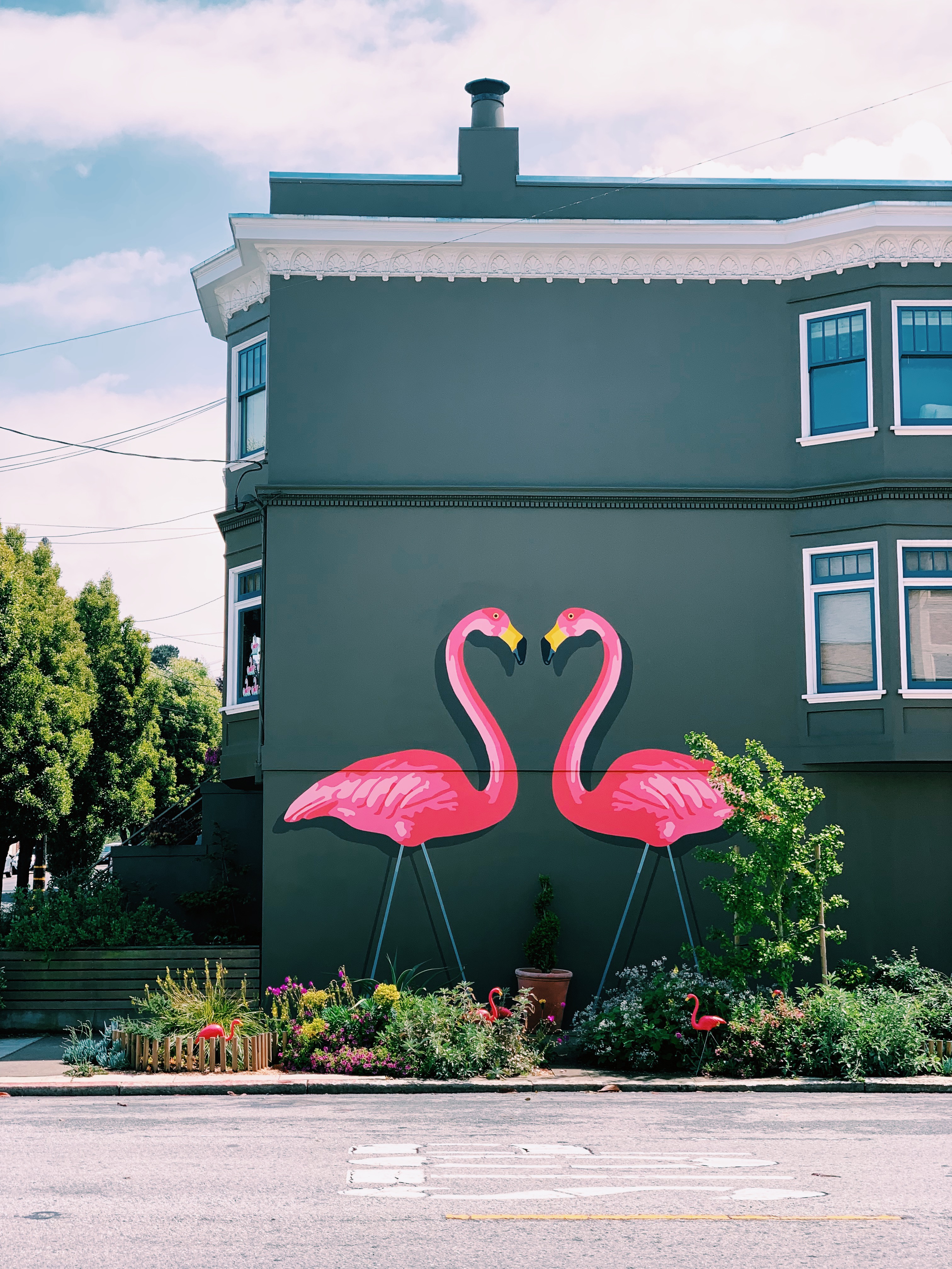This new neighborhood art is a favorite from this wee! These flamingos are just a couple blocks from our apartment & are on a route I take when I walk Juno & Will. This bright statement on Cabrillo makes the neighborhood look so nice & bright & I love it, I think it’s so fun plus they’re sidewalk garden is total urban garden goals & they also added cool seating.