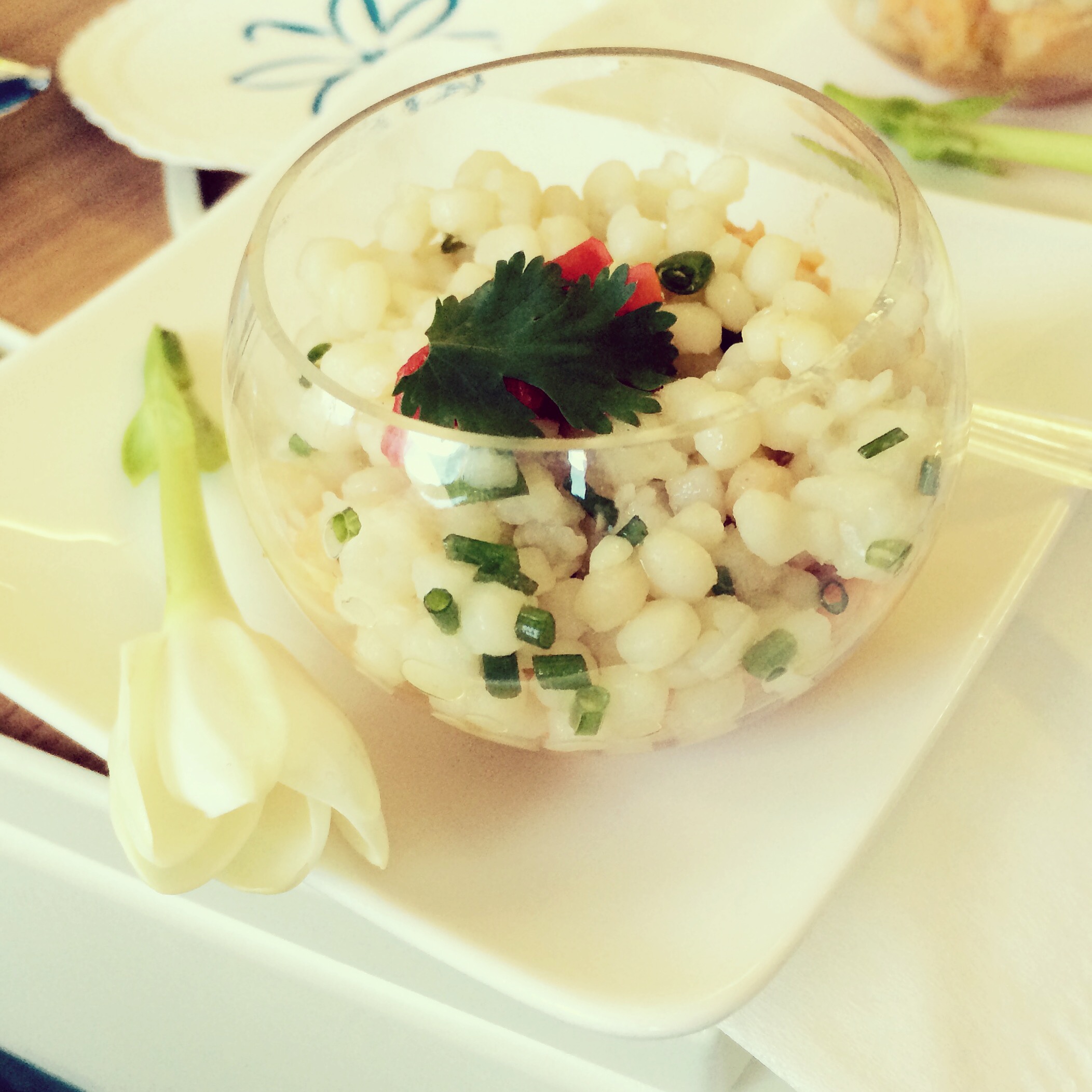 Our first official YOHO ruling as Husband & Wife – Upgrading our seats to Tahiti. As someone who has never flown business class, this was simply outrageous. Yes that is a delicate little glass bowl of Israeli cuscus with smoked duck on the bottom… (what in the world?!).IMG_2567